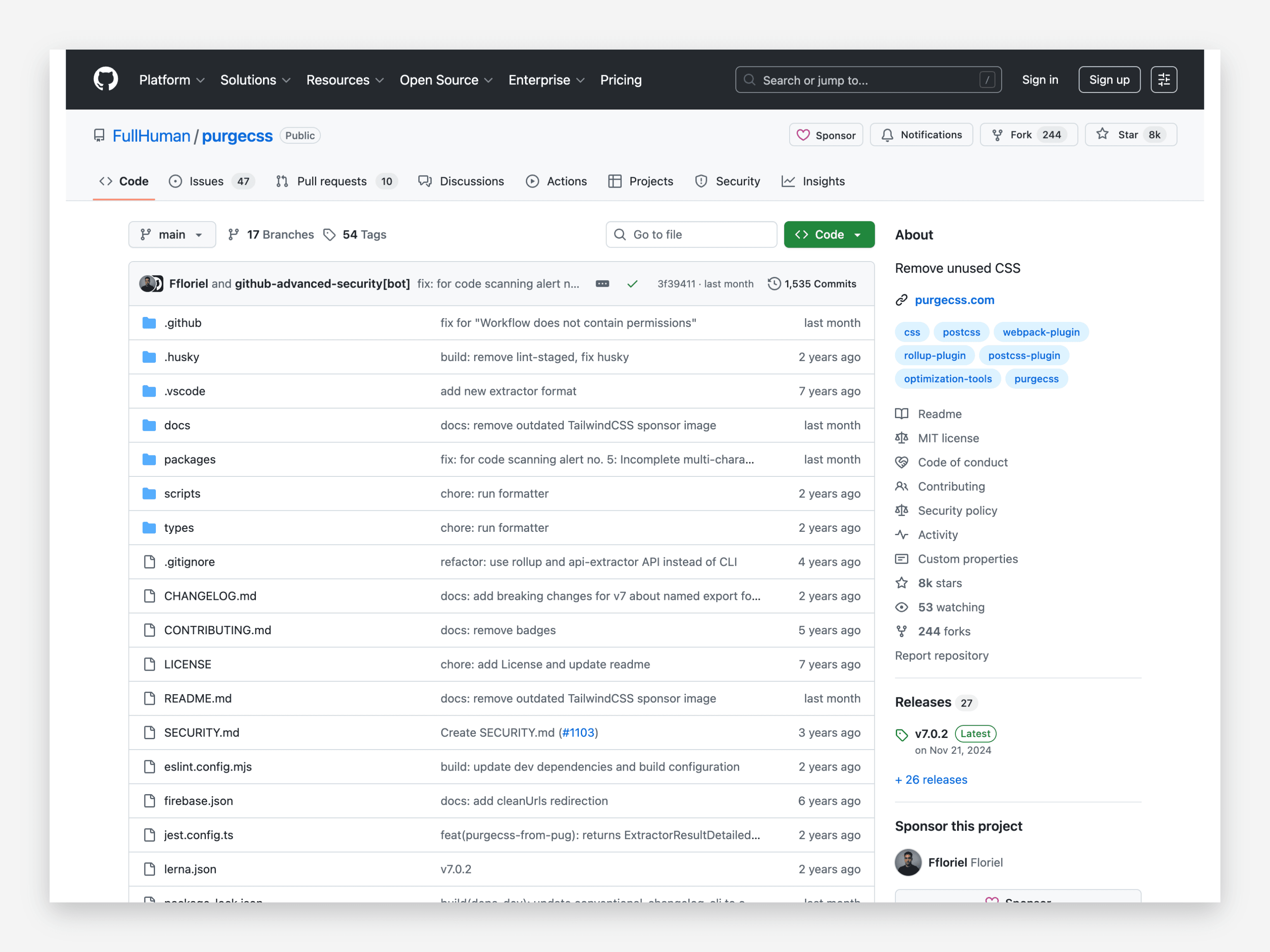 - Projects using PurgeCSS on GitHub